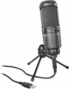 - Le modèle Audio-Technica 2020USB+ Microphone Cardioïde à Électret (connexion USB), disponible au meilleur prix sur la boutique Amazon de la marque.
